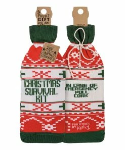 Primitives by Kathy | Red & Green ‘Survival Kit’ Nordic Knit Bottle Bag