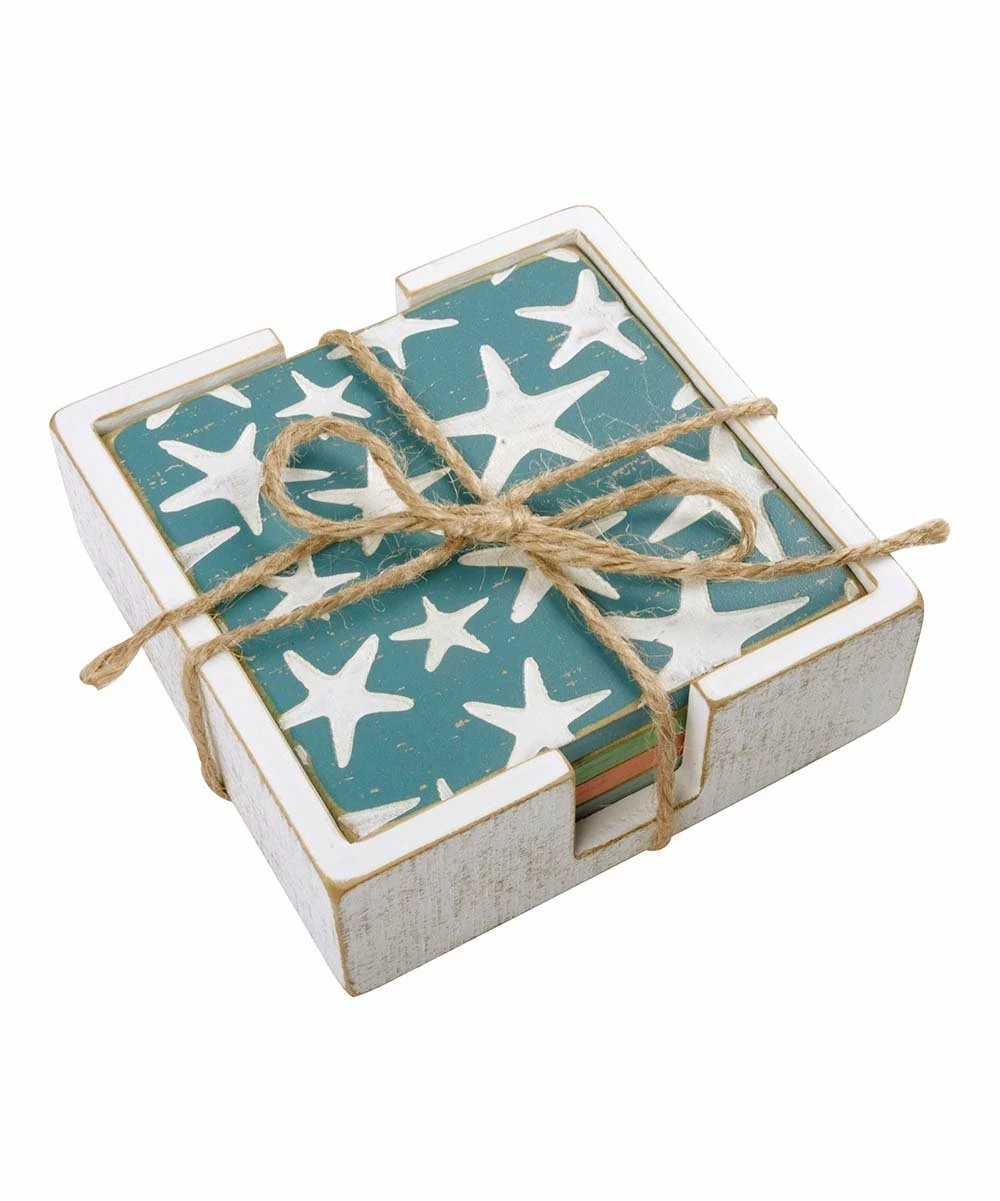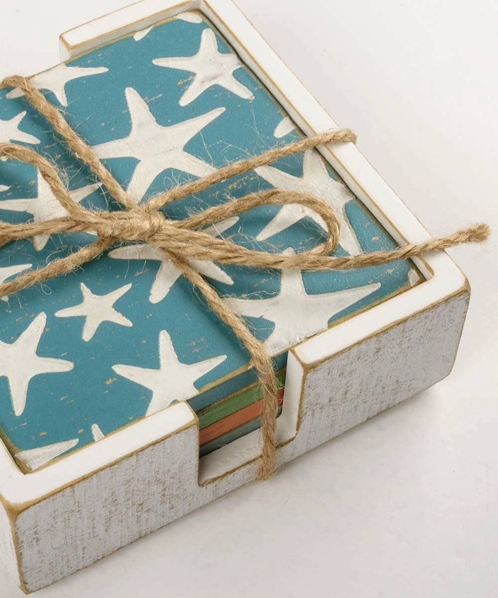 Protect your furniture with these beachy wood coasters that come as a mixed-pattern variety pack with a jute bow tied around them.