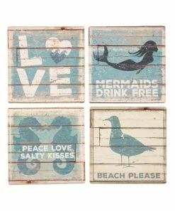 Keep your surfaces protected with beach-inspired flair using these charming stone coasters that flaunt soft hues and cheeky designs.