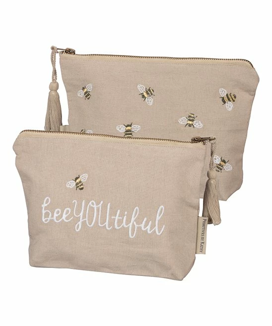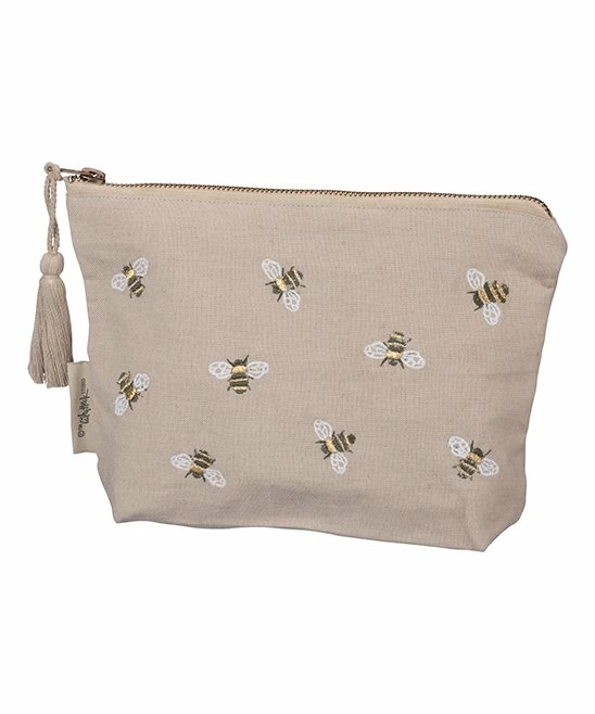Keep your face looking fresh while out and about thanks to this too-sweet cosmetic bag decorated with buzzing friends and an supportive message.