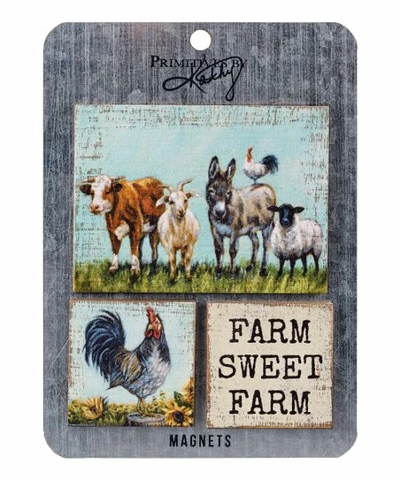 - Full graphic text (beige magnet): Farm sweet farm.