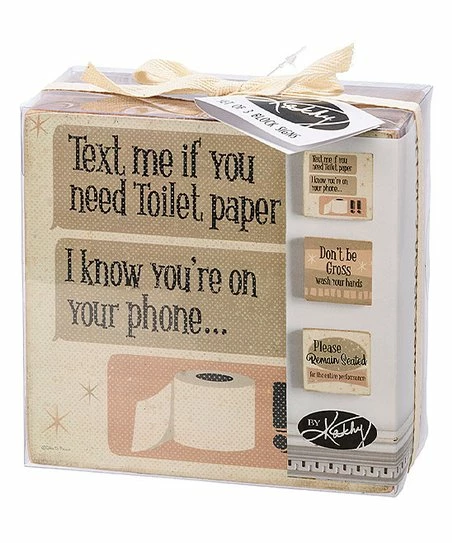 Let your décor speak for you with this durable block sign that features a humorous message made for bathroom giggles.