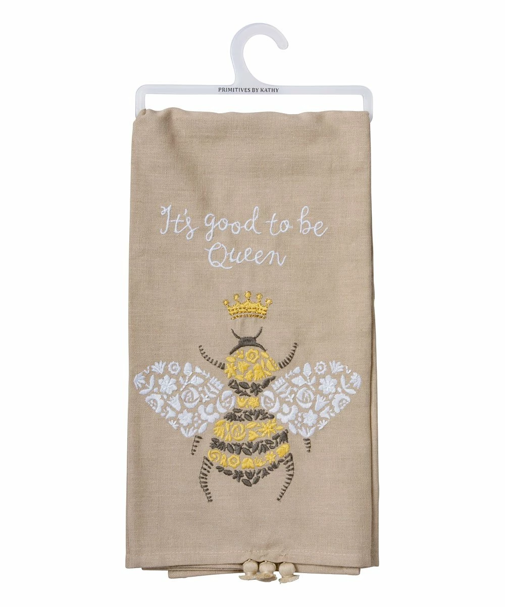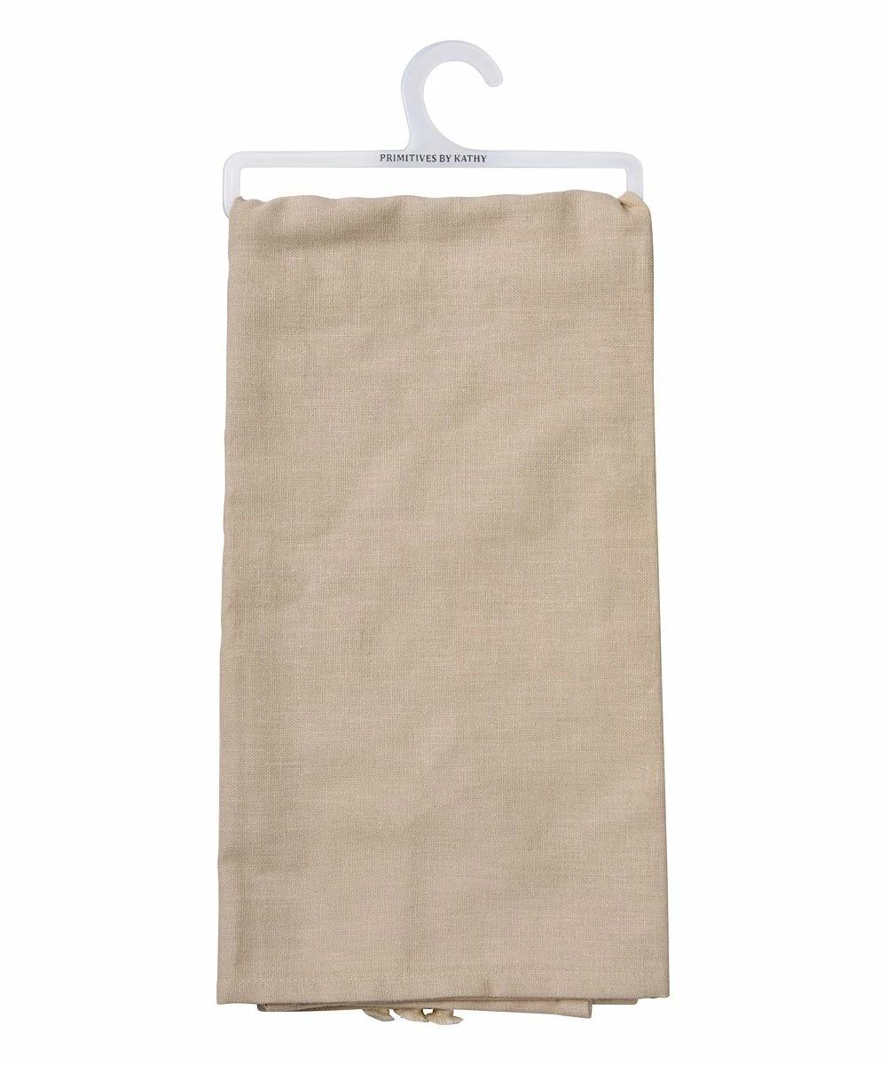 Boost your spirits while you wash and wipe by using this cotton-linen dish towel that features uplifting typography.