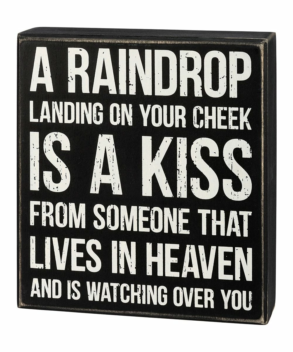 - Full graphic text: A raindrop landing on your cheek is a kiss from someone that lives in heaven and is watching over you.
