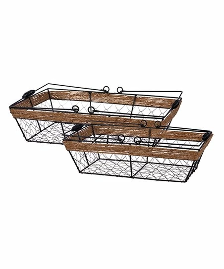 Add farmhouse charm to your space with this set of handled baskets made with a chicken wire design.