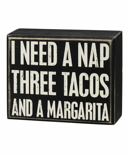 - Full graphic text: I need a nap, three tacos and a margarita.