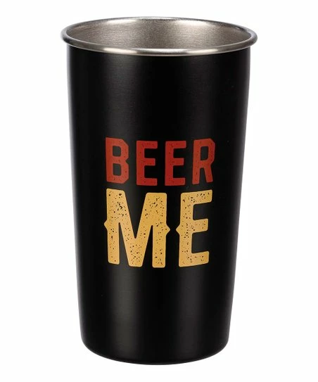 Fill up on your favorite beer from this stainless steel tumbler featuring a humorous phrase.