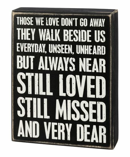 - Full graphic text: The things we love don’t go away. They walk beside us everyday, unseen, unheard, but always near, still loved, still missed and very dear.