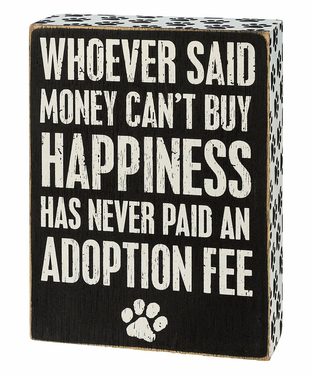 - Full graphic text: Whoever said you can’t buy happiness has never paid an adoption fee.