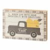 Crafted from wood, this box sign offers a smile-worthy message and distressed coloring.