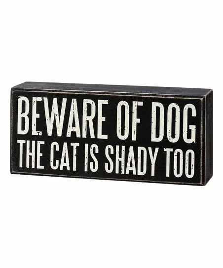 - Full graphic text: Beware of dog. The cat is shady too.