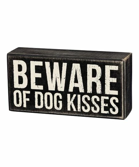 Add charm to your interior décor with this wooden box sign featuring a delightful doggie warning.