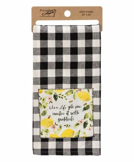 Absorbent all-cotton dish towel featuring versatile colors and an inspirational graphic.