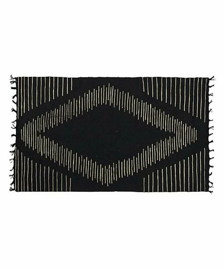 Give a charming accent to your home display with the decorative design and fringe details of this rug.