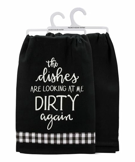 This dish towel’s gingham pattern and message adds a humorous touch to your kitchen collection.