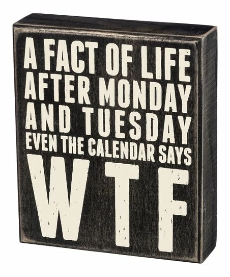 - Full graphic text: A fact of life after Monday and Tuesday even the calendar says WTF.