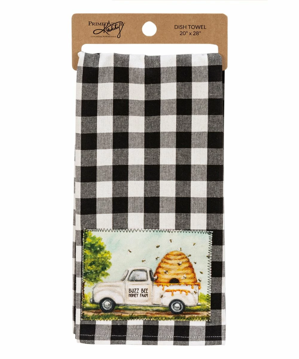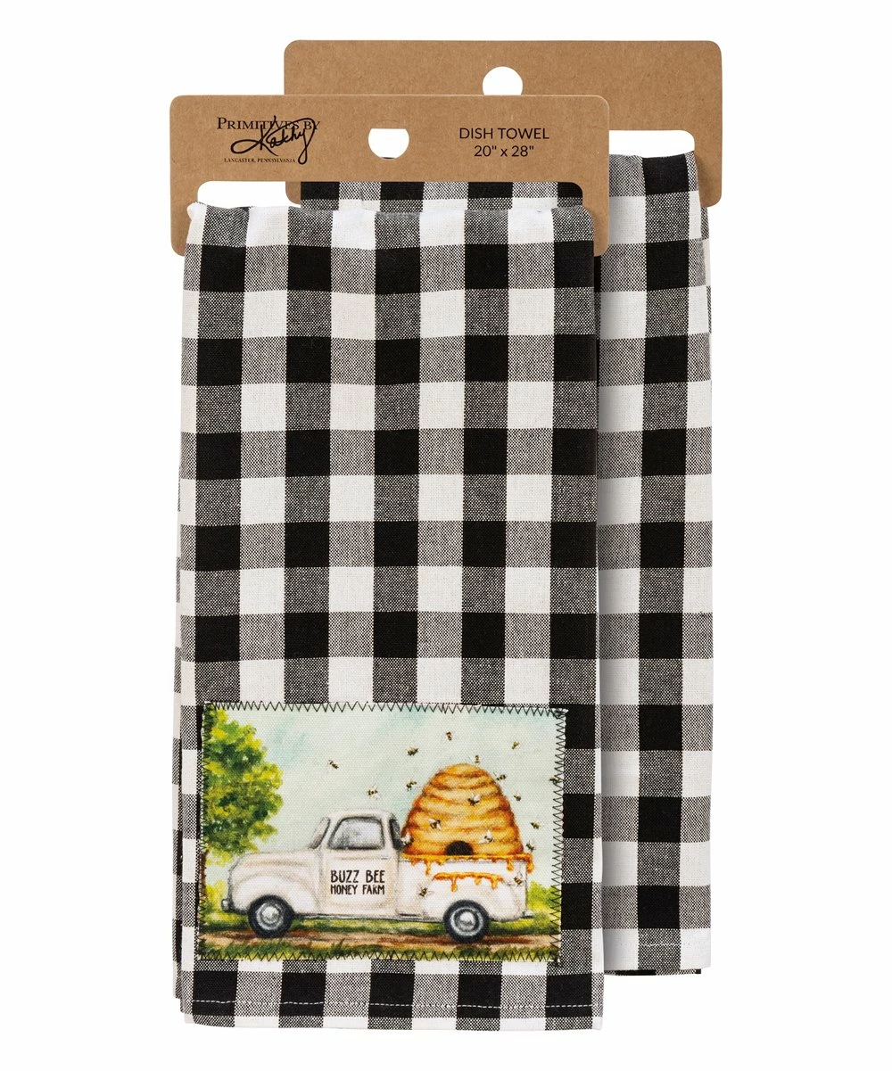 Refresh your cooking haven with this kitchen towel made with breathable cotton and showcasing a farmhouse-inspired graphic on classic gingham print.