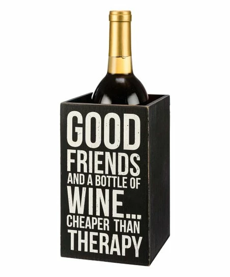 - Full graphic text: Good friends and a bottle of wine…cheaper than therapy.