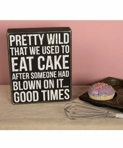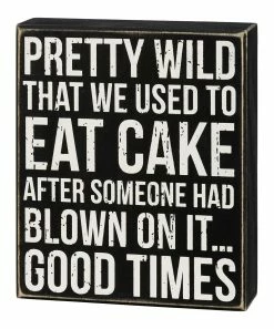 Add a pop of personality to your living space aesthetic with this box sign that features a smile-inspiring message and a distressed finish.