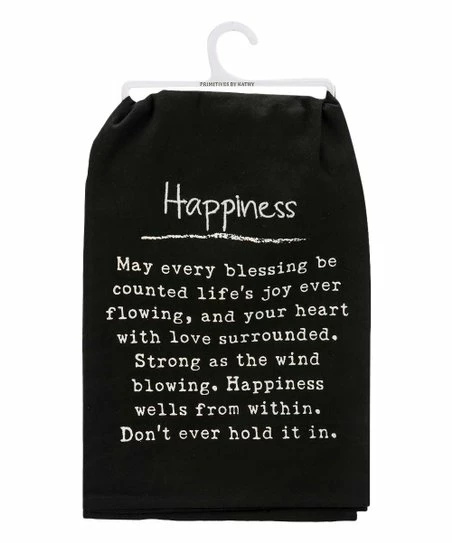Keep this dish towel within reach for quick clean ups. It fits your kitchen theme with a wholesome message of happiness.