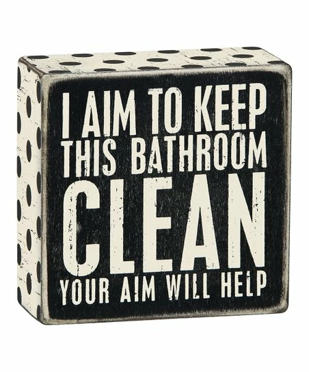 - Full graphic text: I aim to keep this bathroom clean your aim will help.