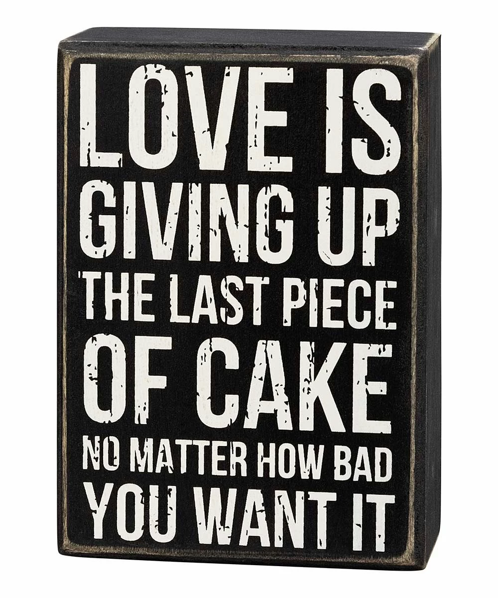 - Full graphic text: Love is giving up the last piece of cake no matter how bad you want it.