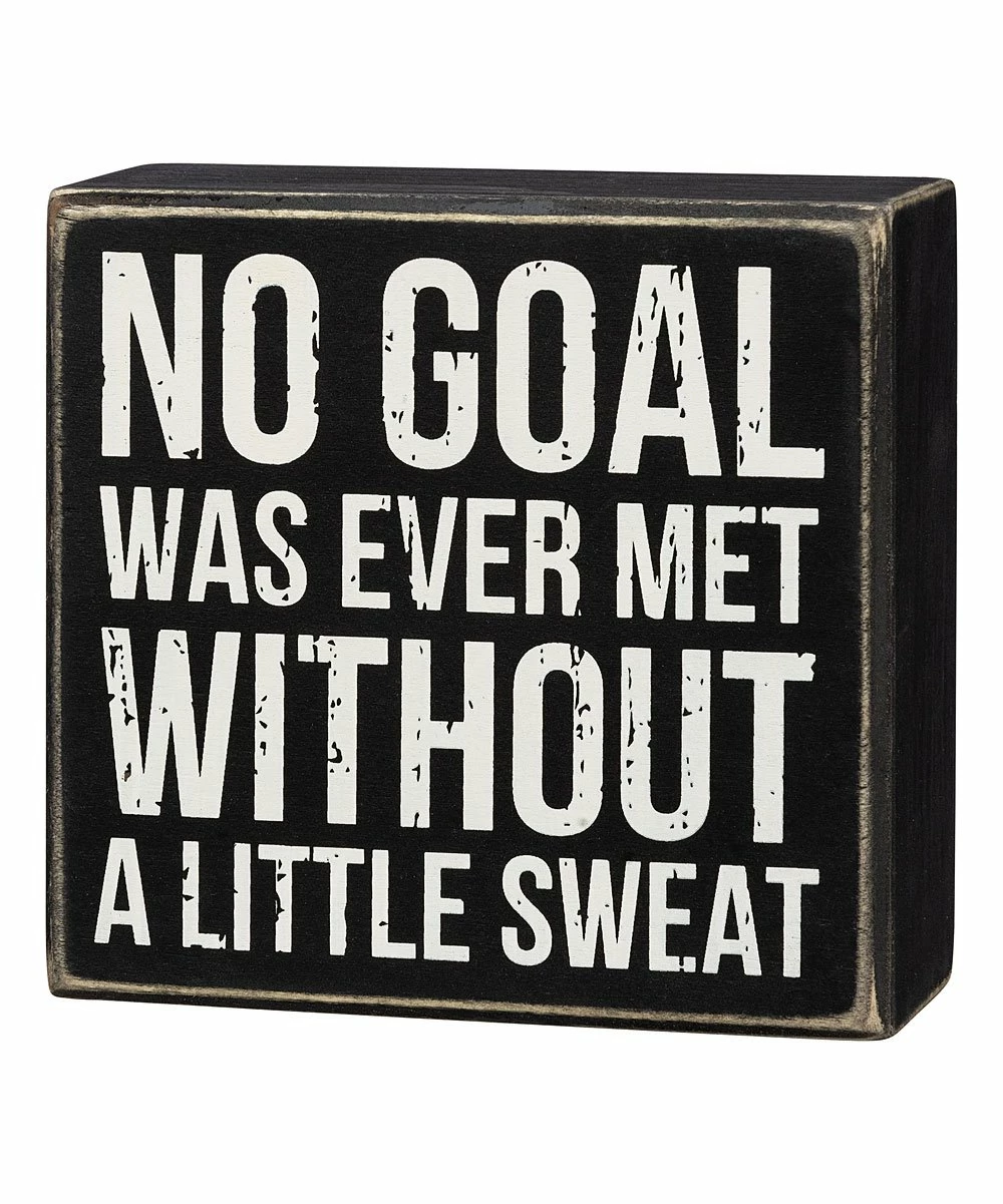 Improving your mood is as simple as glancing at the inspirational typography that appears in bold black and white on this rustic wood box sign.