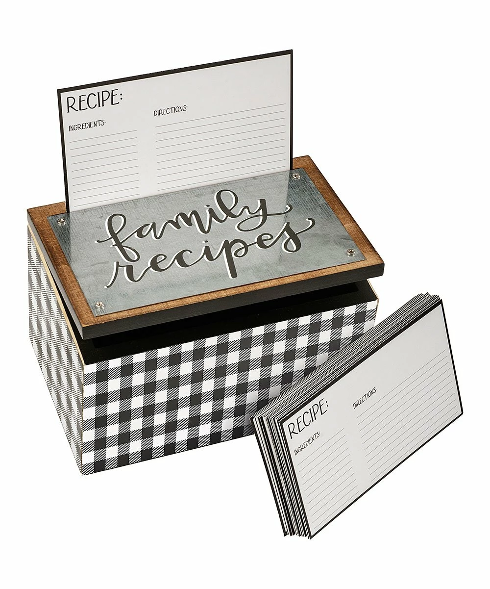 Safely store your most treasured family recipes inside of this delightfully detailed box that comes equipped with recipe cards just waiting to hold your tasty blueprints.