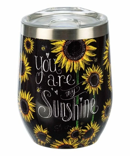 Wine tumbler made from stainless steel and featuring a delightful sunflower print.