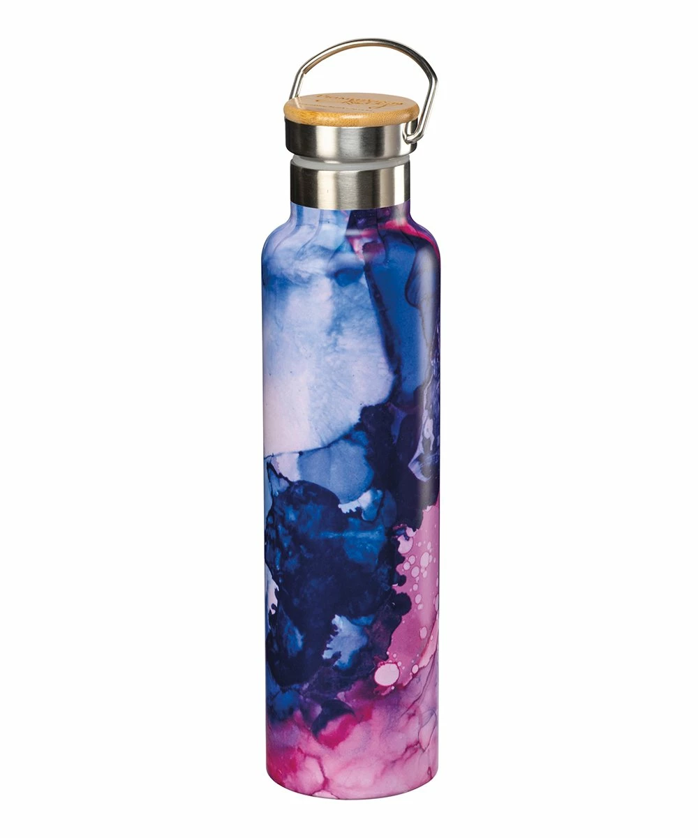 Keep your drink at the ideal temperature on the go in this insulated bottle. The bamboo lid features a lever handle to seal it securely into place.