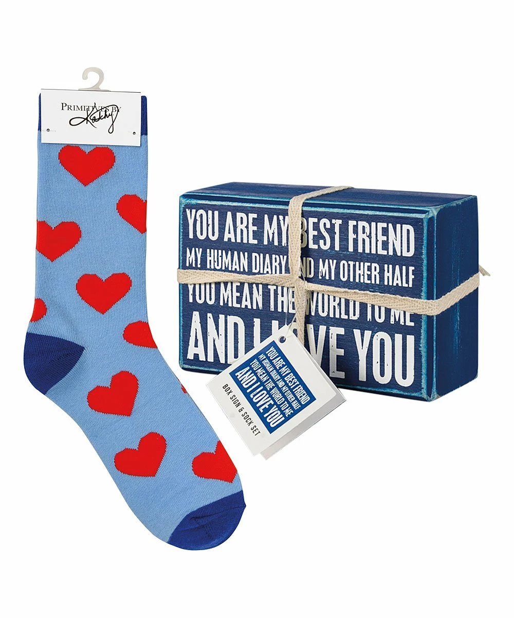 Give this rustic box sign and statement socks combination as a heartfelt gift that’s sure to lead to a smile. The socks feature soft and breathable cotton-blend material for lasting comfort.