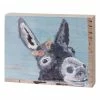 This wooden box sign features a charming and colorful animal-inspired design to accent your space.