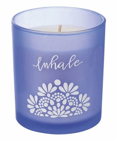 This candle comes housed in a glass jar that’s decorated with floral artwork and features a calming message.