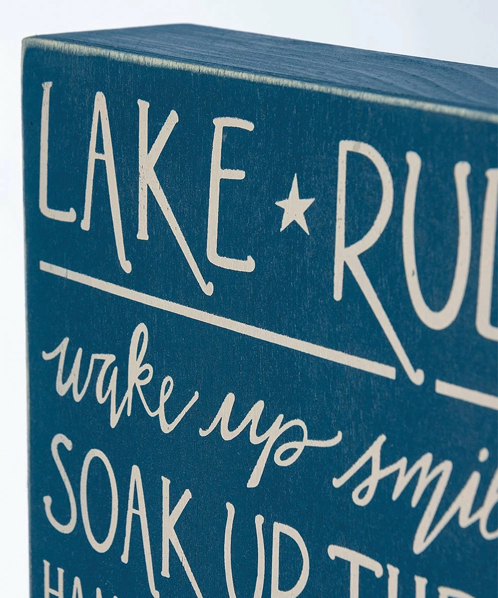 Celebrate the lake life with the bold typographic touch of this box sign that adds a playful accent on an end table, shelf or bookcase.