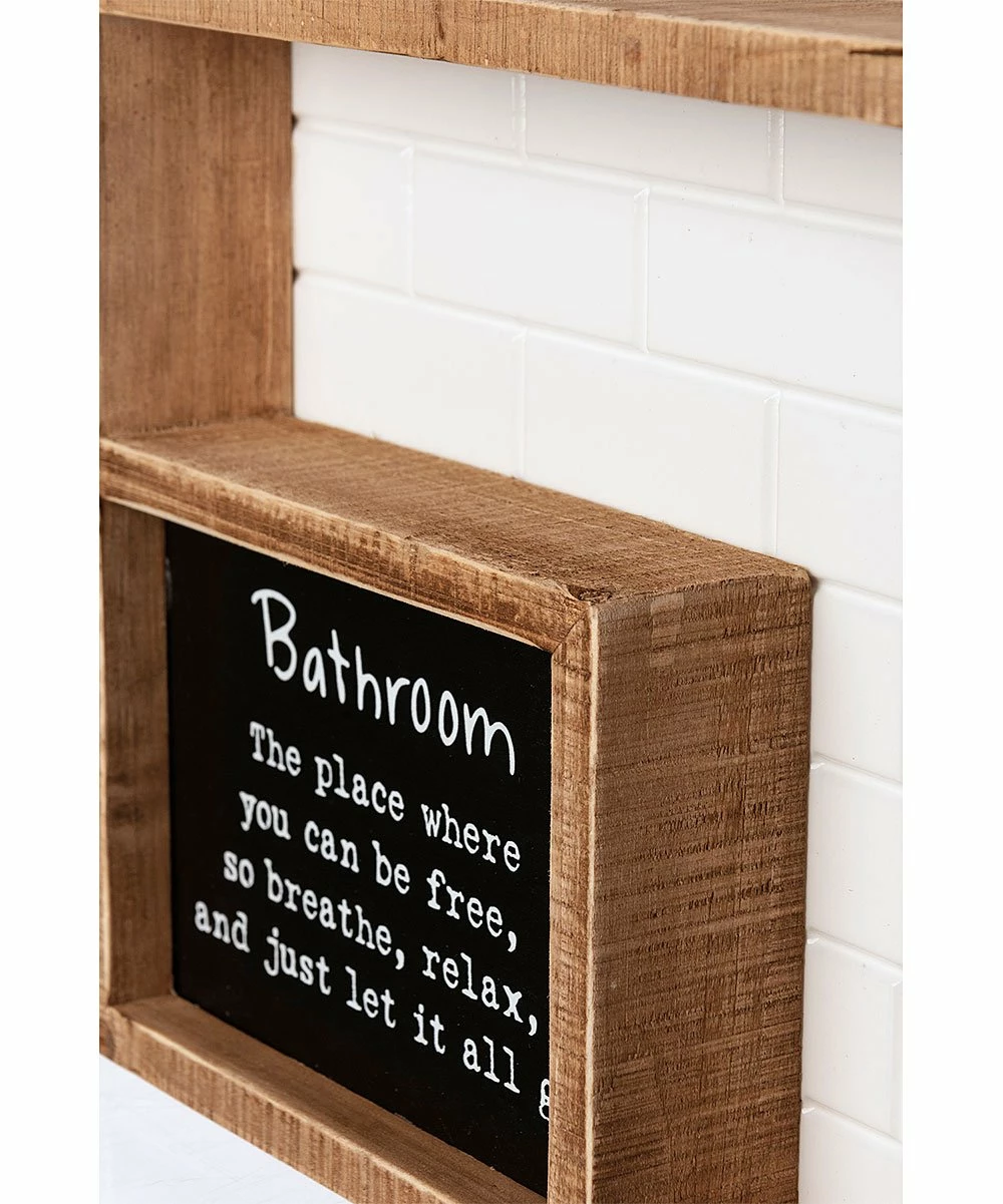 Lend a dash of flair to your bathroom décor with this rustic wooden box sign featuring weathered detail and a smile-inspiring message.