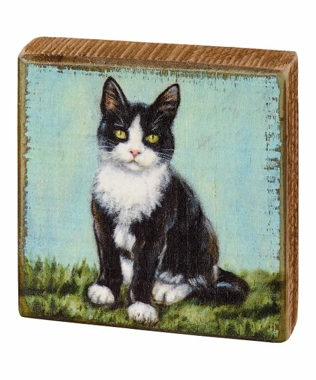 Embellished with a dapper tuxedo cat graphic, this wooden block sign adds a charming, rustic touch to your home décor.