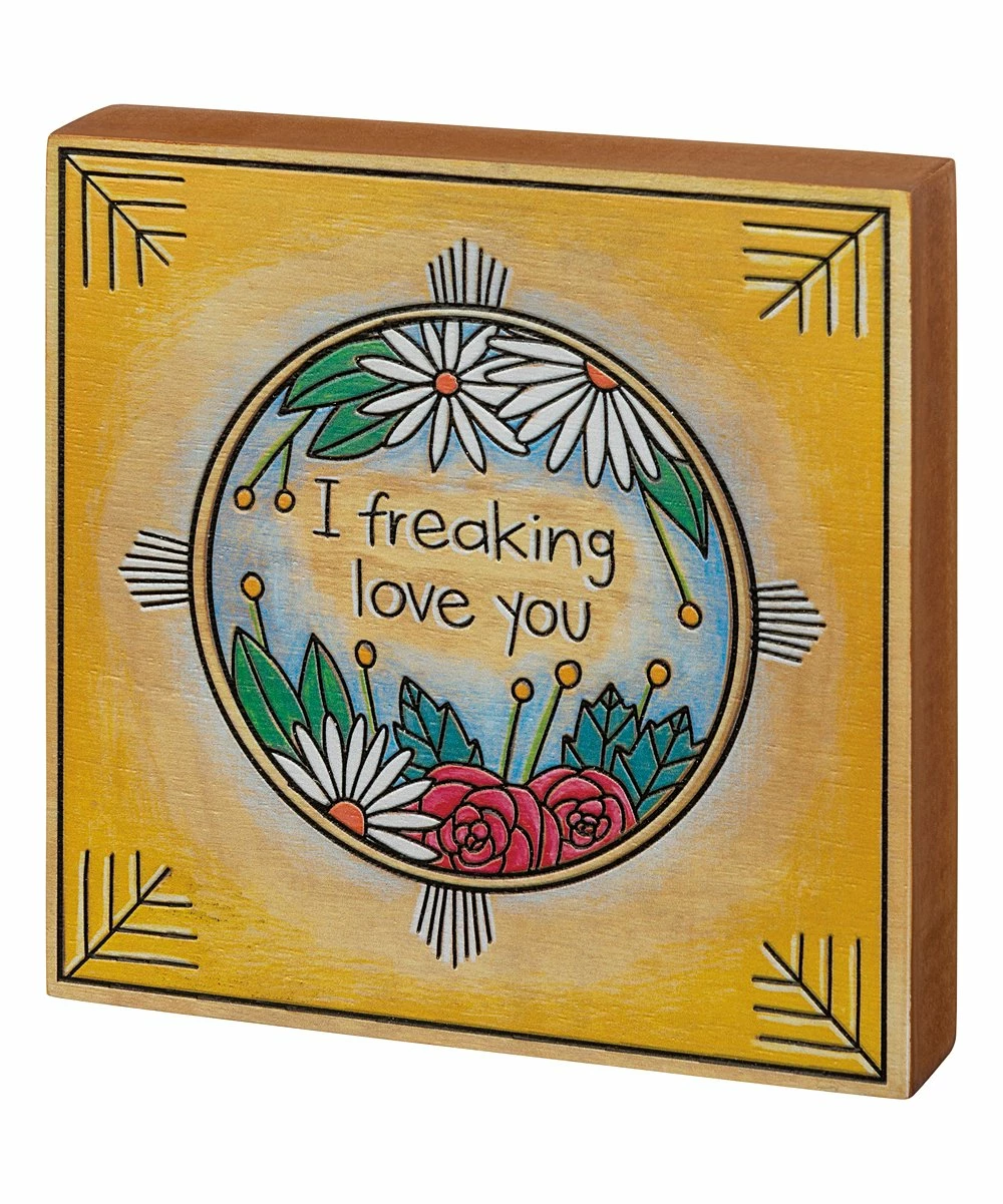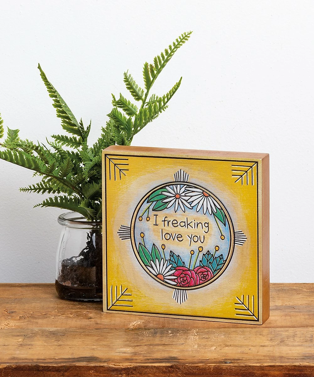 Brighten your day with a little optimism by sprucing up your décor with this this wood block sign boasting a loving message.