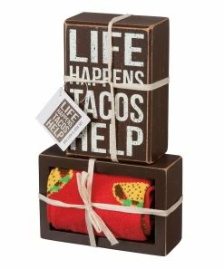 Cheer up a loved one’s day with this giftable block sign and socks set that boasts a playful design and quirky sentiment.