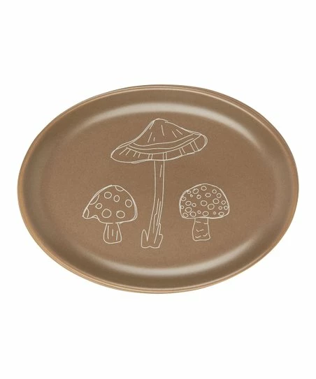 Multi-use stoneware vanity tray featuring a mushroom sketch.