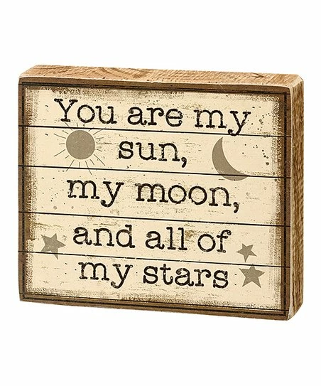 Add rustic charm to your décor with this wooden box sign. A heartwarming message and celestial accents.