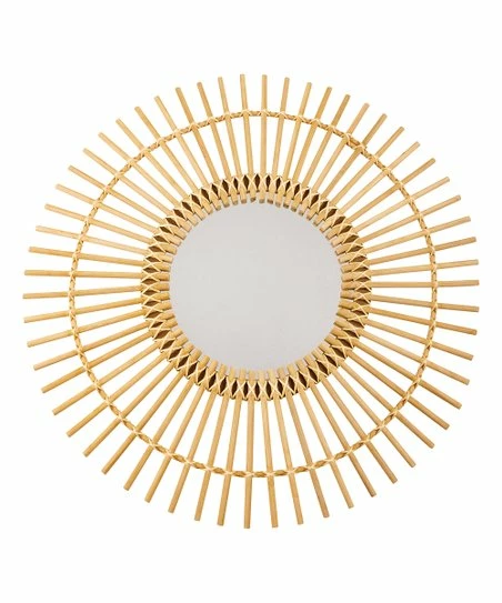 This attractive mirror reflects your taste with a round sunburst frame made of rustic rattan.