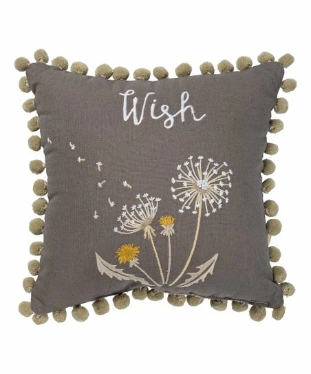 Update your space with this playful throw pillow featuring pom-pom trim and an embroidered design.