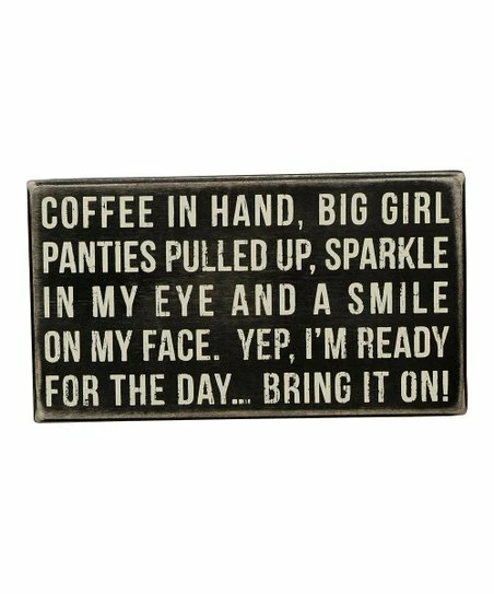 - Full graphic text: Coffee in hand, big girl, panties pulled up, sparkle in my eye and a smile on my face. Yep, I’m ready for the day…bring it on.