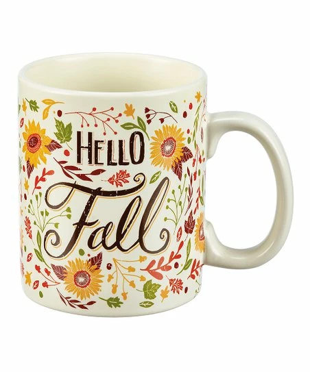 Give your seasonal essentials a quick refresh with this stoneware mug featuring an autumnal theme and cheerful message.