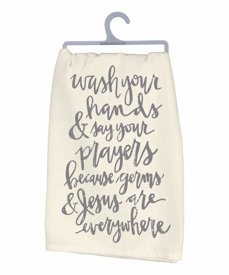 Keep kitchens and counters clean with this absorbent dishtowel highlighted with a touch of religious-inspiration.