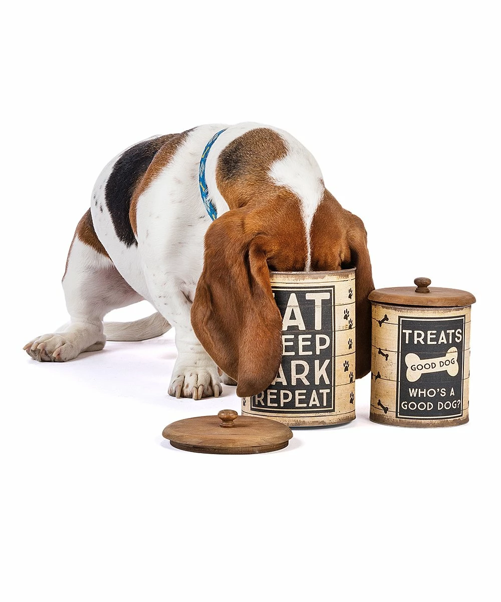 Store Fido’s treats in style with these canisters that sport cheeky messages.