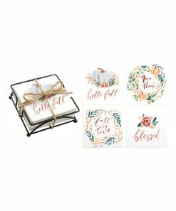 Protect your surfaces with this coaster set, designed with a pleasing theme that can be brought out for fall or used all year.