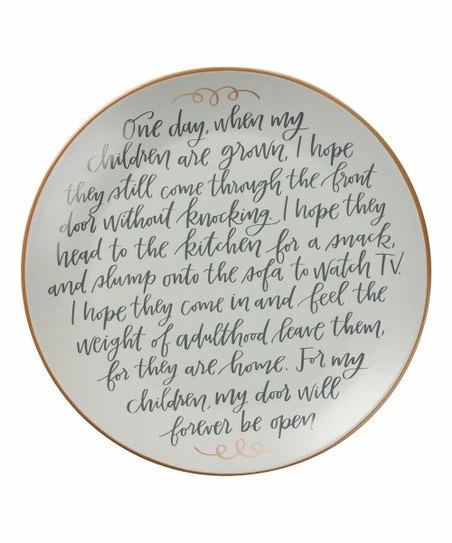 Infuse your interior with a touch of positivity by updating your décor with this plate that features an endearing phrase.