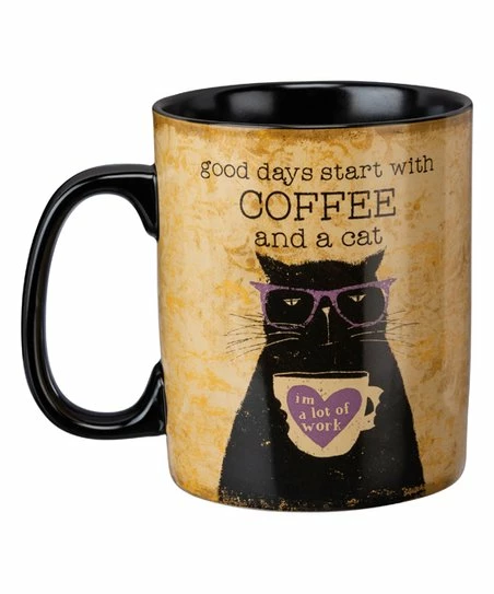 - Full graphic text: Good days start with coffee and a cat. I’m a lot of work.