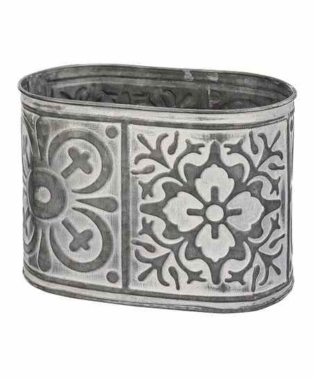 Update your home storage options when you bring this charming metal bin that flaunts an intricate floral-embossed design.